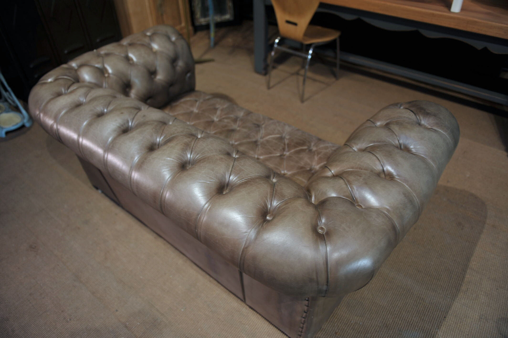Vita chesterfield tufted faux leather sofa with scroll arms, brown. The deep seat is soft and comfortable and the leather has just enough wear for a little character, see photos. Large oxblood vintage leather double sided chesterfield tufted conversation sofa. Shaded leather is soft and supple on this vintage european furniture. Vintage leather chesterfield sofa alex stuart designs inc.